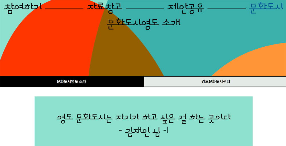 예) 이 페이지에는 영도문화도시센터에서 제공한 영도체 글꼴이 적용되어 있습니다.