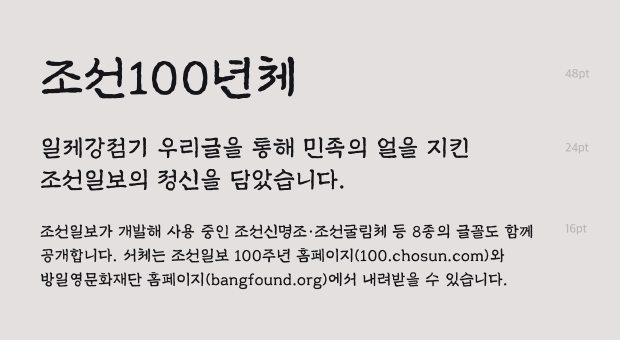 이 폰트는 조선일보에서 창립100주년 기념으로 제작 배포한 폰트입니다.