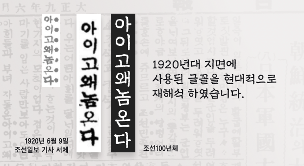 1920년대 조선일보에서 사용한 글꼴을 현대적으로 복원한 ‘조선100년체’를 무료 배포합니다. 방일영문화재단이 개발한 이 서체는 일제강점기 우리글을 통해 민족의 얼을 지킨 조선일보의 정신을 담았습니다.